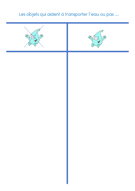 Dessine sur une feuille ce qui t'a aidé à transporter l'eau et ce qui ne t'a pas permis de déplacer l'eau